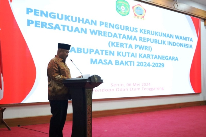 Portalsembilan.com, Tenggarong – Bupati Kutai Kartanegara (Kukar) Edi Damansyah, yang juga menjabat sebagai Ketua Pengurus Persatuan Wredatama Republik Indonesia (PWRI) Kukar, mengukuhkan Kepengurusan Kerukunan Wanita (Kerta) Wredatama Kukar untuk masa bhakti 2024-2029, Senin (6/5/2024).
