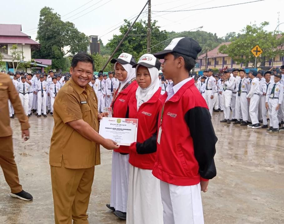 Penghargaan ini diserahkan langsung oleh Kepala Dispora Kukar, Aji Ali Husni, didampingi Kepala Bidang Pembudayaan Olahraga, Aji Muhammad Ari Junaidi, setelah upacara bendera di halaman sekolah pada Senin (9/9/2024).