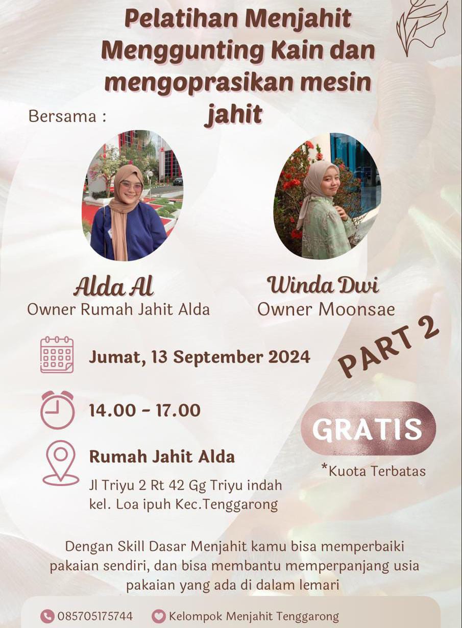 Pelatihan yang berlangsung di Rumah Jahit Alda pada Jumat (13/9/2024) ini menggandeng Winda Dwi, pemilik Moonsae, sebagai instruktur.