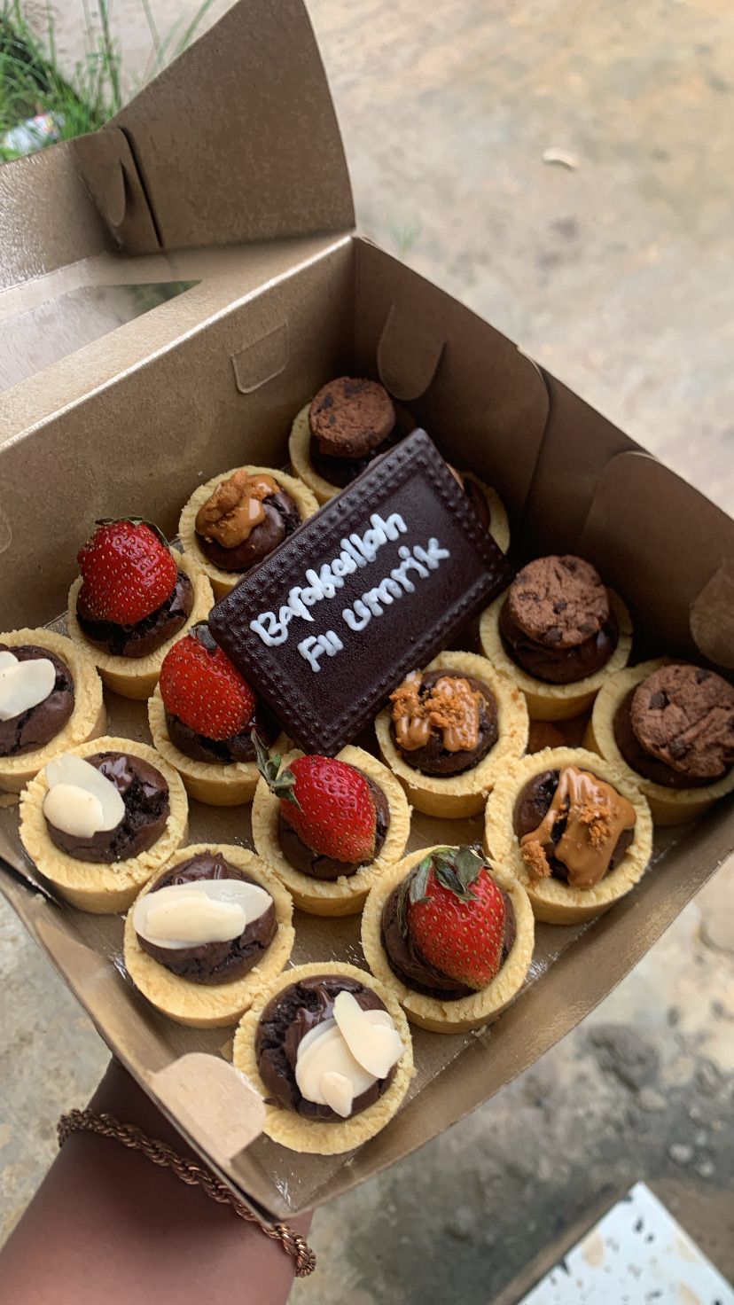 Brownies mini ini dirancang dengan kemasan praktis dan desain menarik, cocok sebagai hadiah untuk berbagai kesempatan seperti ulang tahun, perayaan, atau sekadar bingkisan manis untuk teman.