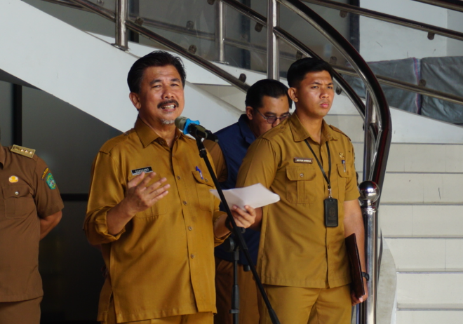 Sekretaris Daerah (Sekda) Kutai Kartanegara (Kukar), Sunggono, membuka dan mengukuhkan peserta training camp (TC) Mandiri Kontingen Porprov Korpri Kabupaten Kutai Kartanegara, di Halaman Kantor Dinas Kepemudaan dan Olahraga Kukar, Senin (18/11/24).