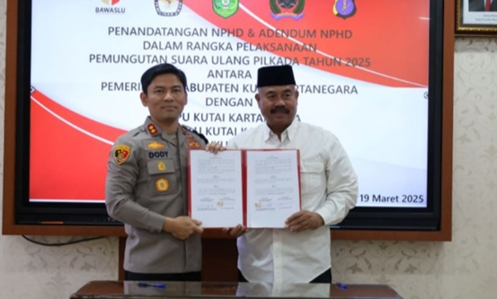 Portalsembilan.com, TENGGARONG – Bupati Kutai Kartanegara (Kukar) Edi Damansyah menandatangani Naskah Perjanjian Hibah Daerah (NPHD) untuk mendukung pelaksanaan Pemungutan Suara Ulang (PSU) Pilkada Kukar 2025, Rabu (19/3/2025). Penandatanganan dilakukan bersama KPU Kukar, Bawaslu, Kodim 0906/Kukar, Kodim 0908/Bontang, Polres Kukar dan Polres Bontang di Ruang Eksekutif Kantor Bupati.