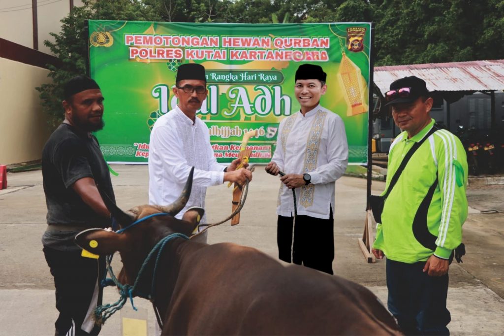 Portalsembilan.com, KUKAR – Kegiatan penyembelihan hewan qurban dalam rangka Idul Adha 1446 Hijriah tahun 2025 Masehi digelar di Markas Komando Polres Kutai Kartanegara pada Jumat (6/6/2025). Kegiatan ini mengusung tema “Idul Adha Meningkatkan Keimanan, Ketaqwaan dan Kepedulian Sosial Guna Mewujudkan Polri Presisi”.