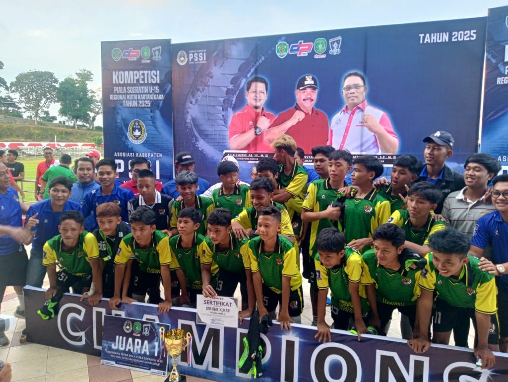 Portalsembilan.com, Kutai Kartanegara – SSB GMK Kutai Kartanegara (Kukar) U-15 sukses menjadi juara Piala Soeratin Cup Tahun 2025 Regional Kota Tenggarong setelah menundukkan SSB Bhakti Jaya 3-0 dalam final di Stadion Rondong Demang, Tenggarong, pada Selasa sore (24/6/2025).