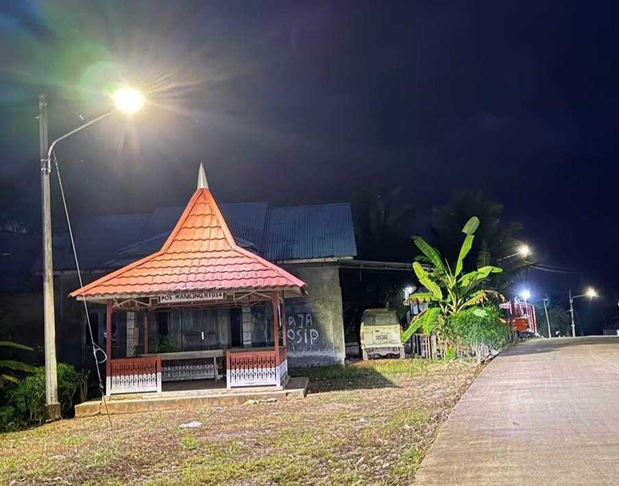 Lampu jalan yang sudah terpasang di Desa Tani Bhakti, Kecamatan Loa Janan.