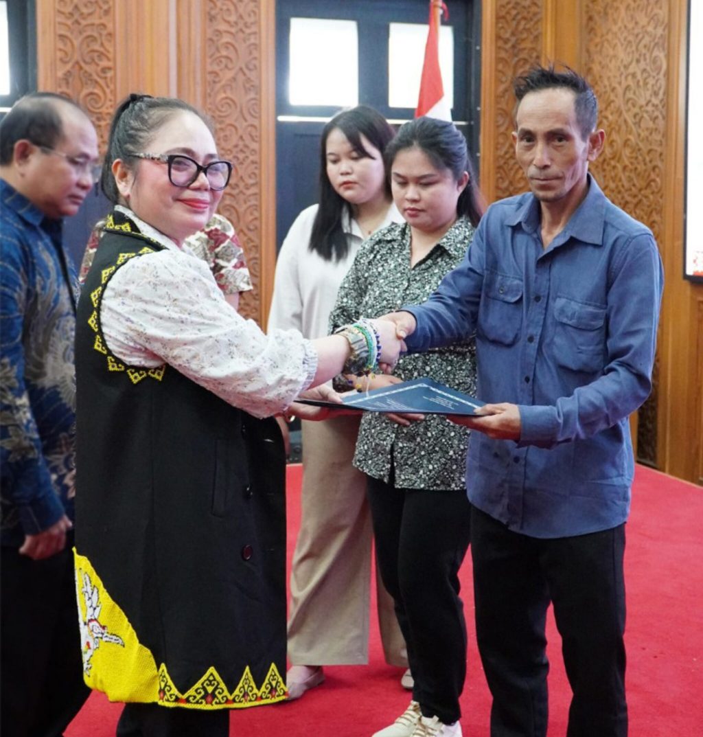 Pemerintah Kabupaten (Pemkab) Mahakam Ulu (Mahulu) secara resmi menyerahkan Surat Keputusan Administrasi Hukum Umum (SK AHU). *(DISKOMINFOSTANDIMAHULU)
