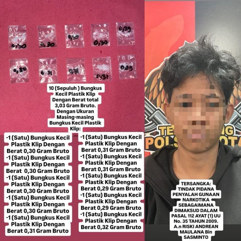 Portalsembilan.com, Samarinda – Tim Elang Unit Reskrim Polsek Samarinda Kota berhasil mengungkap kasus peredaran narkotika di wilayah hukum setempat. Seorang pemuda berinisial RAM (22) diamankan bersama barang bukti sabu-sabu siap edar pada Senin (4/8/2025) malam.