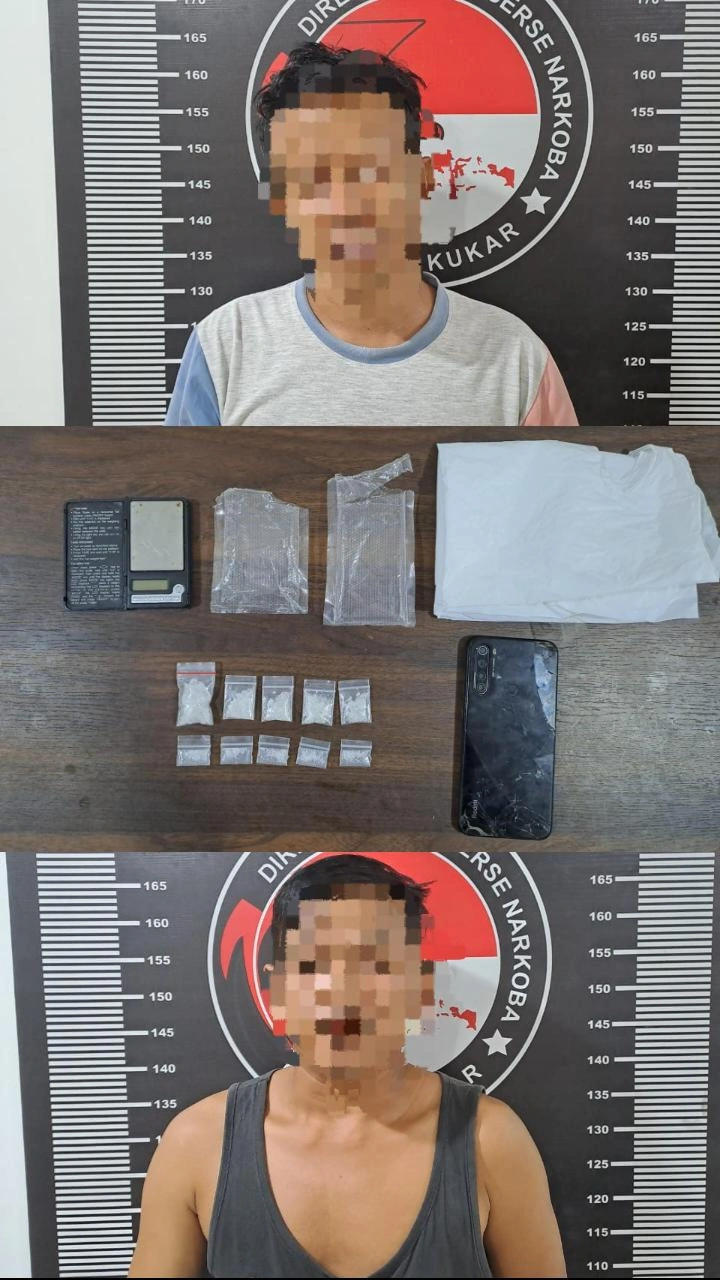 Dari tangan keduanya, polisi menyita barang bukti berupa 10 bungkus sabu dengan berat kotor 11,40 gram, satu unit timbangan digital, satu unit motor Honda PCX warna hitam KT 2952 FN, serta sebuah ponsel.