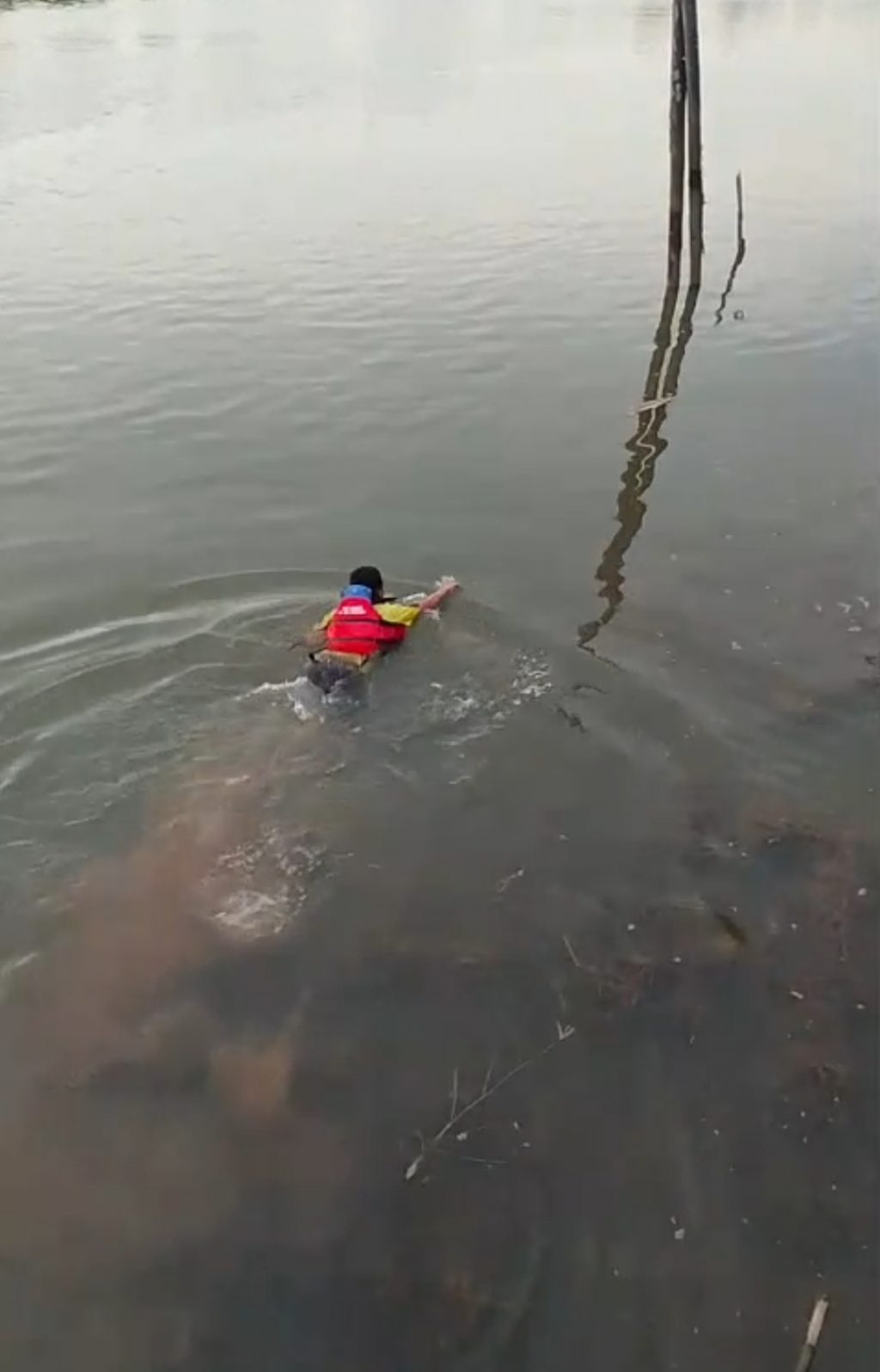 Dua personel, yaitu Farid dan Danar, langsung bergerak menuju lokasi dengan menggunakan kendaraan roda dua (R2) dan perlengkapan keselamatan berupa life jacket.