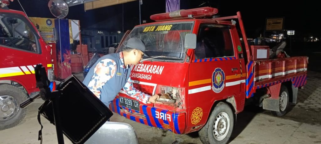 Portalsembilan.com, Kutai Kartanegara – Dalam upaya menjaga kesiapsiagaan dan meningkatkan pelayanan kepada masyarakat, Posko Pemadam Kebakaran dan Penyelamatan (Damkarmatan) Sang sanga terus melakukan perawatan terhadap sarana dan prasarana pendukung operasionalnya. Salah satu langkah konkret yang dilakukan baru-baru ini adalah pemeliharaan rutin terhadap kendaraan operasional jenis L300, termasuk pergantian lampu depan dan pengecekan sistem pendukung lainnya, Jumat (31/10/2025).