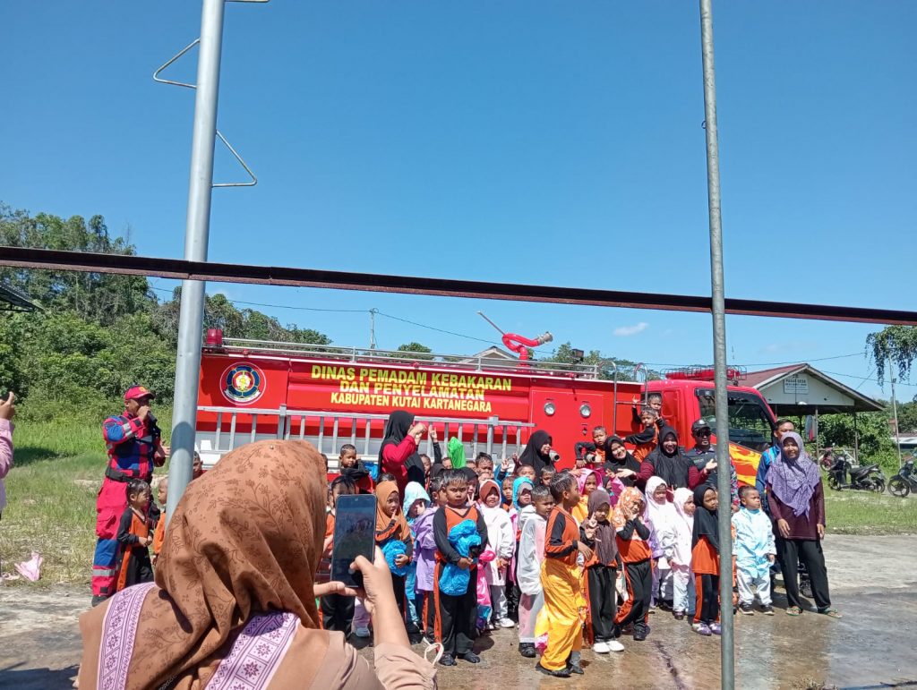 Portalsembilan.com, Kutai Kartanegara – Dinas Pemadam Kebakaran dan Penyelamatan (Damkarmatan) Kabupaten Kutai Kartanegara (Kukar) melalui Pos Sektor Samboja Pesisir melaksanakan kegiatan edukasi pemadam kebakaran di Taman Kanak-Kanak (TK) Cinta Bawah, Desa Bukit Raya, Kecamatan Samboja, pada Sabtu (01/11/2025). Kegiatan ini bertujuan untuk memperkenalkan profesi pemadam kebakaran kepada anak-anak sejak dini serta memberikan pemahaman dasar tentang pencegahan dan penanggulangan kebakaran.