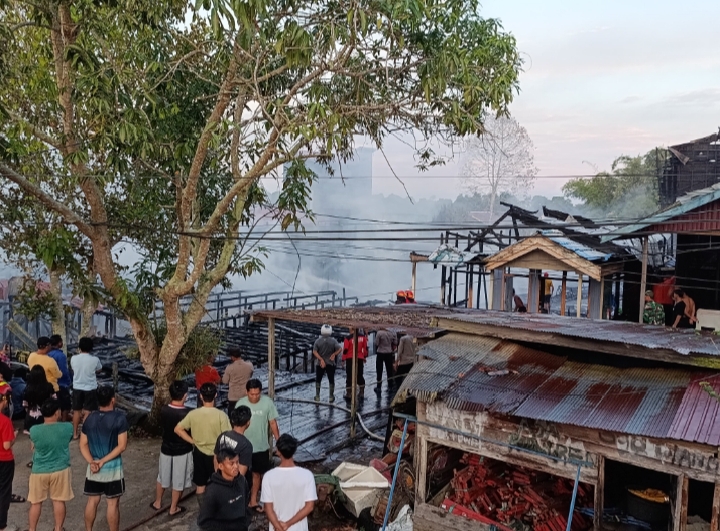 Portalsembilan.com, Kutai Kartanegara – Kebakaran hebat melanda permukiman padat penduduk di Jalan Awang Long RT. 09, Desa Liang/Liang Ilir, Kecamatan Kota Bangun, Kutai Kartanegara, pada Kamis (27/11/2025) dini hari. Si jago merah dengan cepat melalap tujuh rumah warga, satu bangunan walet, dan merusak dua rumah lainnya. Akibatnya, 12 kepala keluarga (KK) atau 40 jiwa, yang terdiri dari 28 orang dewasa dan anak-anak, kehilangan tempat tinggal. Kerugian materi diperkirakan mencapai angka 2 miliar rupiah.