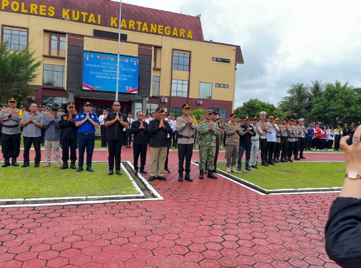 Portalsembilan.com, Kutai Kartanegara – Personel Dinas Pemadam Kebakaran dan Penyelamatan (Damkarmatan) Kutai Kartanegara (Kukar) turut mengikuti apel kesiapsiagaan dalam rangka pelaksanaan Operasi Ketupat 2026 yang digelar di Markas Komando Polres Kutai Kartanegara, Kamis (12/3/2026).